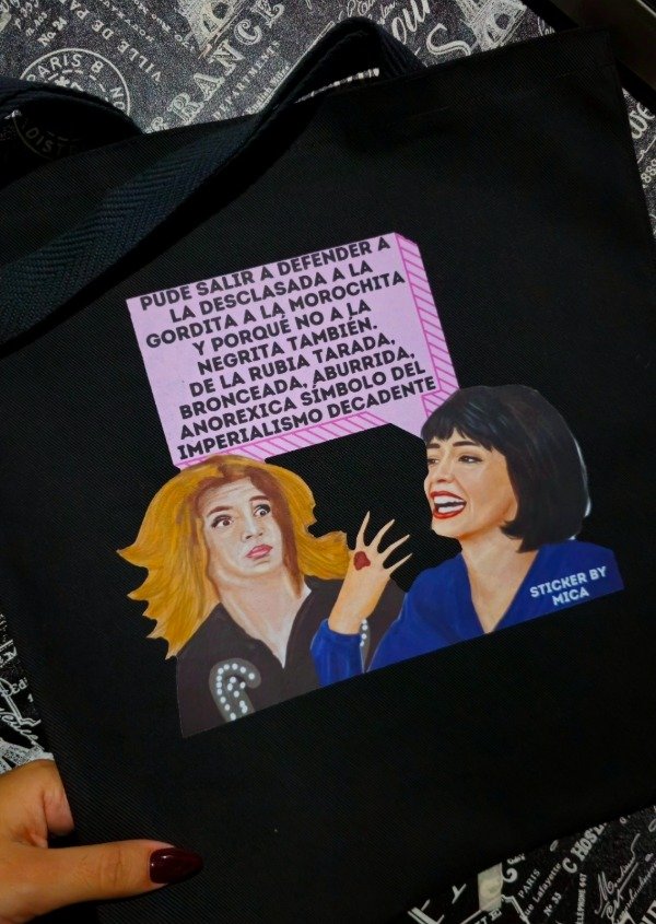 Bolso tote bag gabardina negra premium, medidas 35x40, estampada con dtf textil