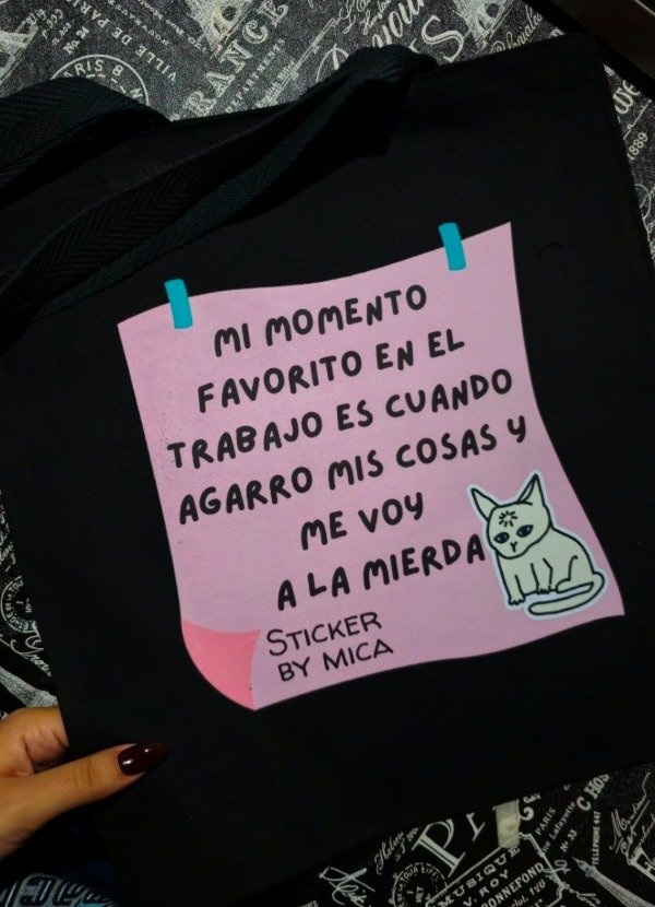 Bolso tote bag gabardina negra premium, medidas 35x40, estampada con dtf textil